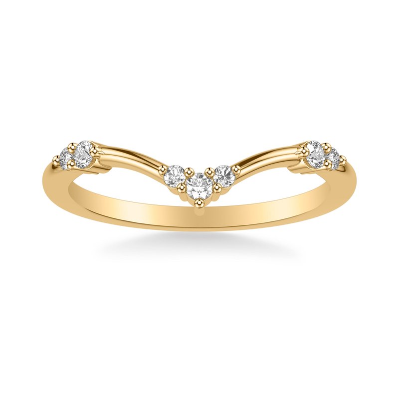 Contemporary Curved Wedding Band with Multiple Cluster Sections of Diamonds