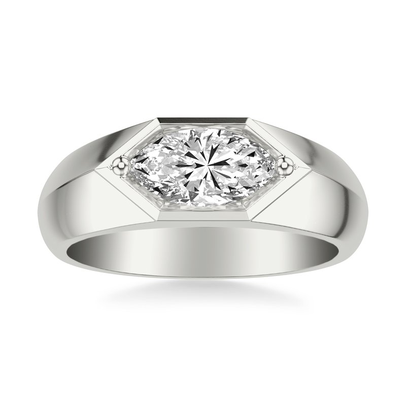 Contemporary East West Oval Engagement Ring with Wide Knife Edge Polish Band