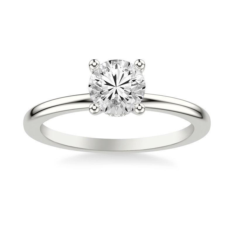 Classic Solitaire Engagement Ring with Diamond Collar and Polished Shank