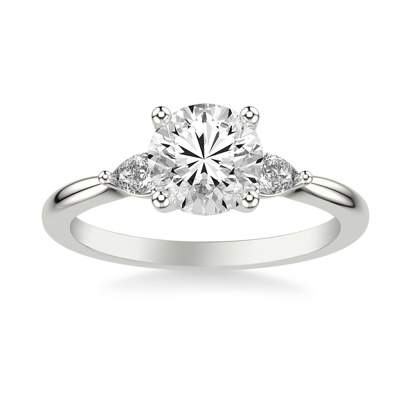 Classic Diamond Three Stone Ring with Pear Side Stones