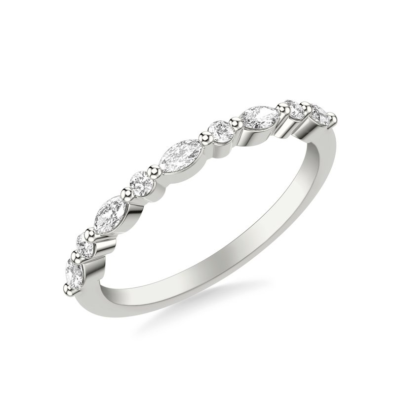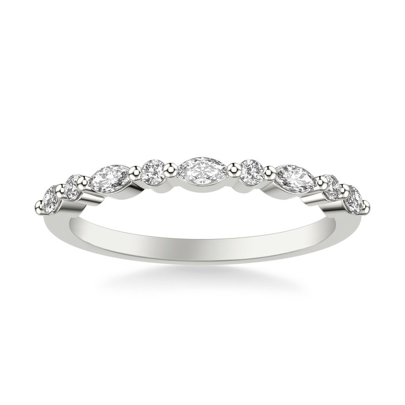 Contemporary Wedding Band with Alternating Round and Marquise Diamonds with Shared Prongs