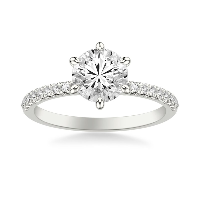 Classic Six Prong Engagement Ring with Diamond Collar and Diamond Shank