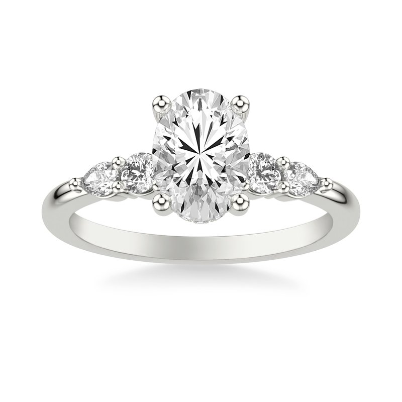 Classic Diamond Engagement Ring with Round and Pear Diamonds with Shared Prongs