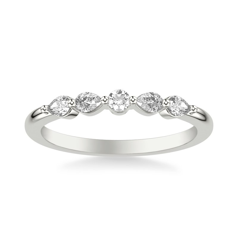 Contemporary Wedding Band with Marquise and Round Diamonds with Shared Prongs