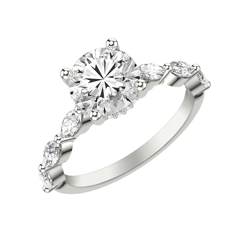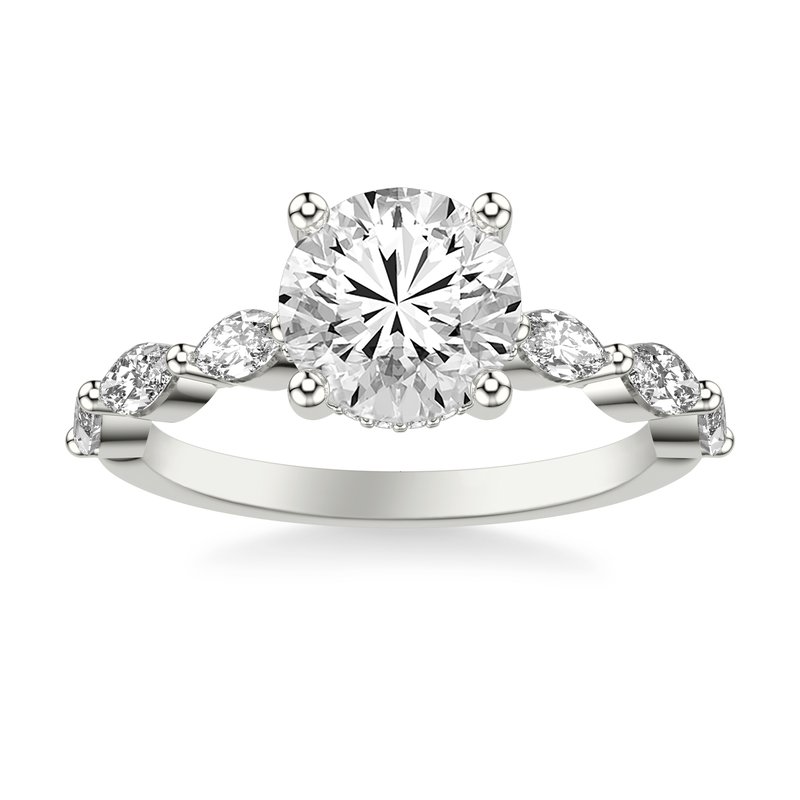 Contemporary Engagement Ring with Marquise Diamonds with Shared Prongs and Hidden Diamond Details