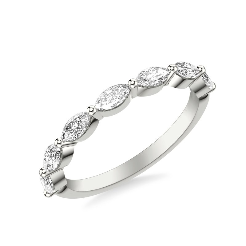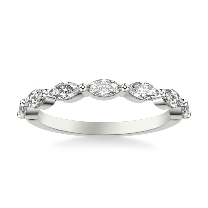 Contemporary Wedding Band with Marquise Diamonds and Shared Prongs