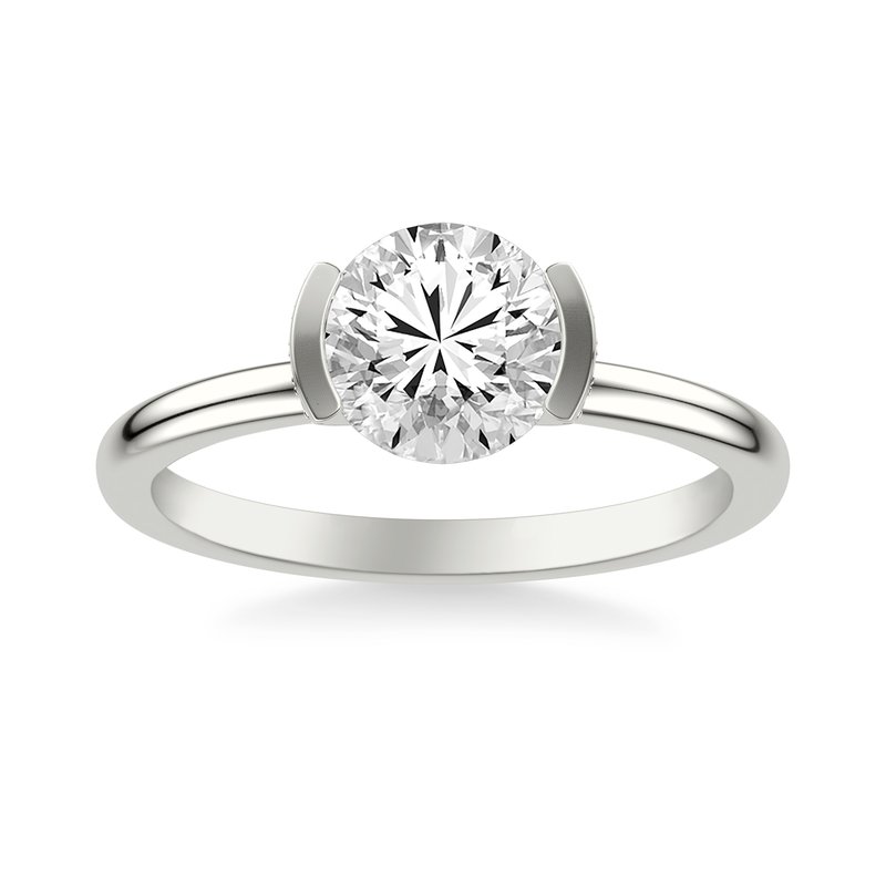 Contemporary Half Bezel Solitaire Diamond Engagement Ring with Polished Shank and Hidden Diamond Details