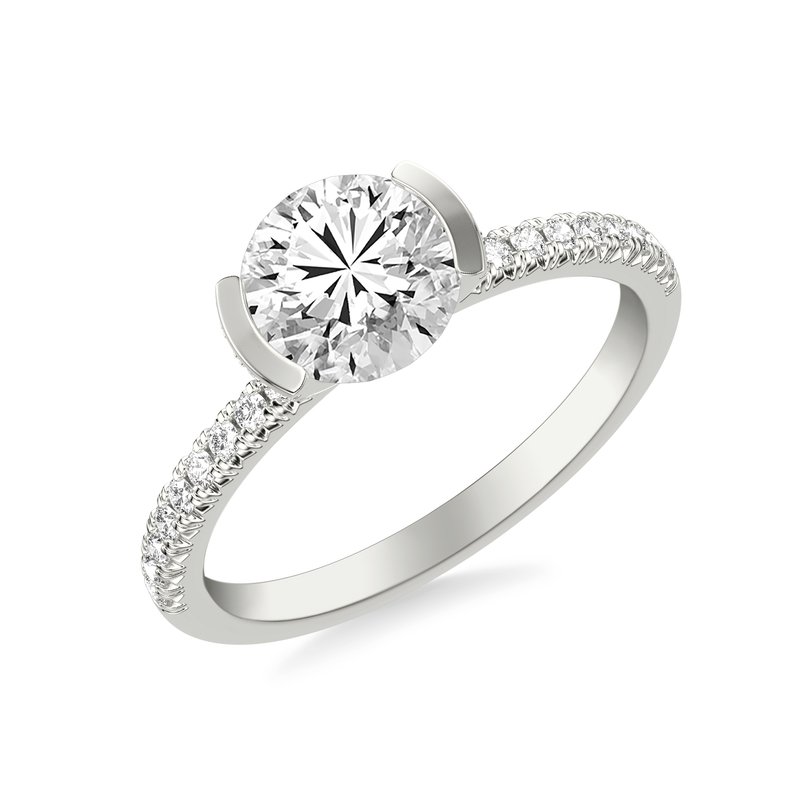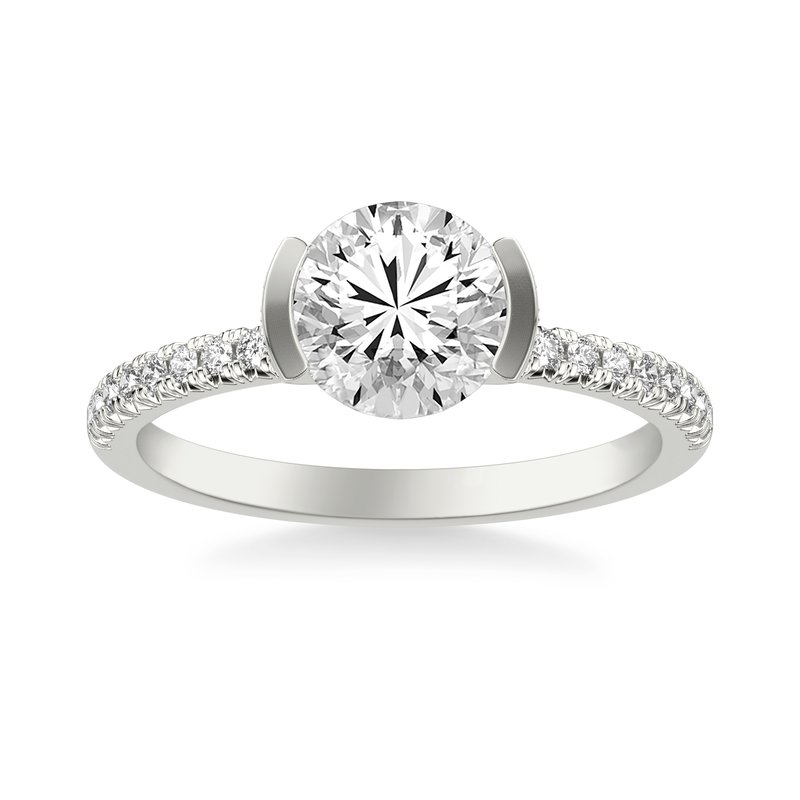 Contemporary Half Bezel Solitaire Diamond Engagement Ring with Polished Shank and Hidden Diamond Details