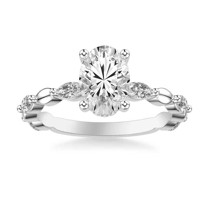 Contemporary Engagement Ring with Hidden Halo and Alternating Marquise Diamond with Organic Marquise Shaped Bead Shank