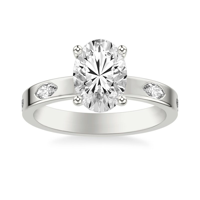 Contemporary Wide Band Engagement Ring with Bezel Set Distance Marquise Diamond Polished Shank