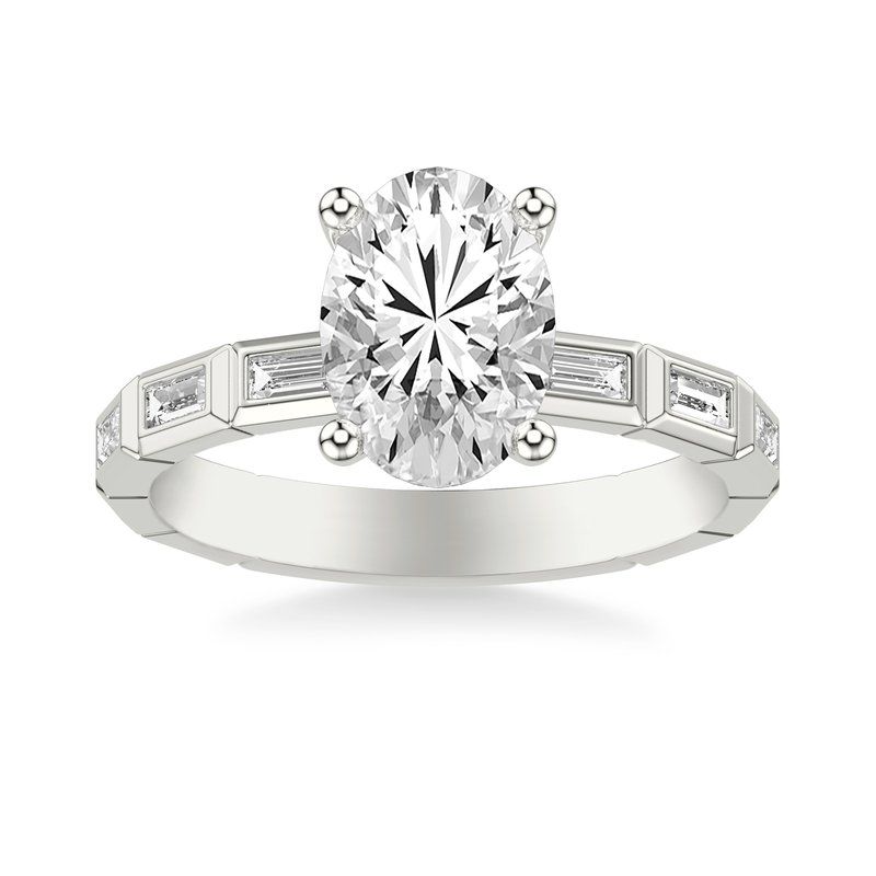 Contemporary Beveled Engagement Ring with Bezel Set East/West Baguette Diamonds