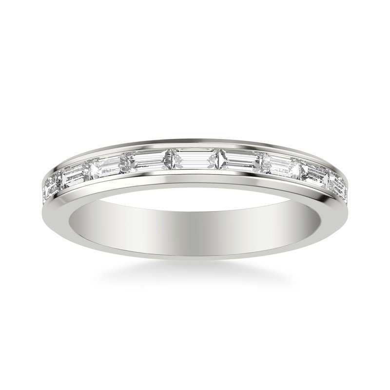 Contemporary Beveled Wedding Band with Channel Set East/West Baguette Diamonds