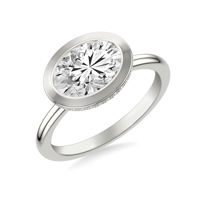 Contemporary East-West Bezel Set Engagement Ring with Hidden Halo and Polished Shank