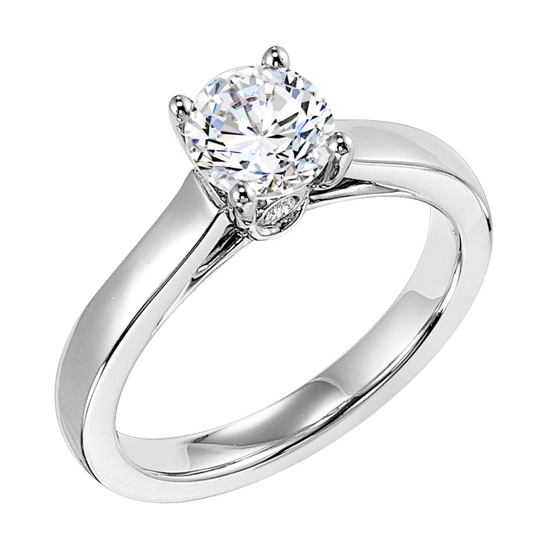 This alluring solitaire engagement ring features a 4-prong setting and beautiful surprise diamond