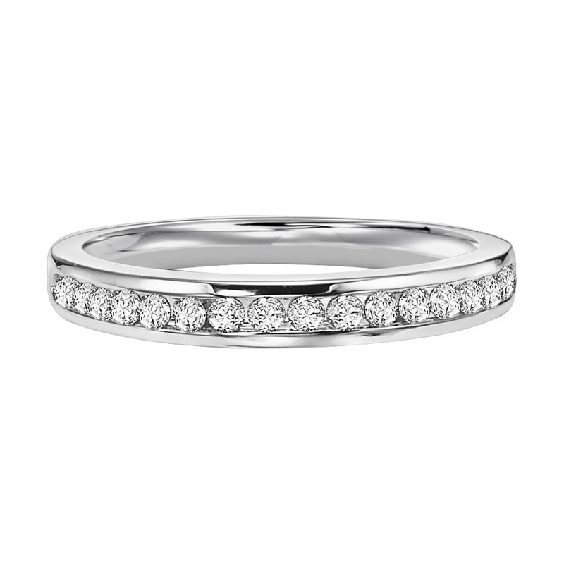 Wedding band with channel set, round diamonds.