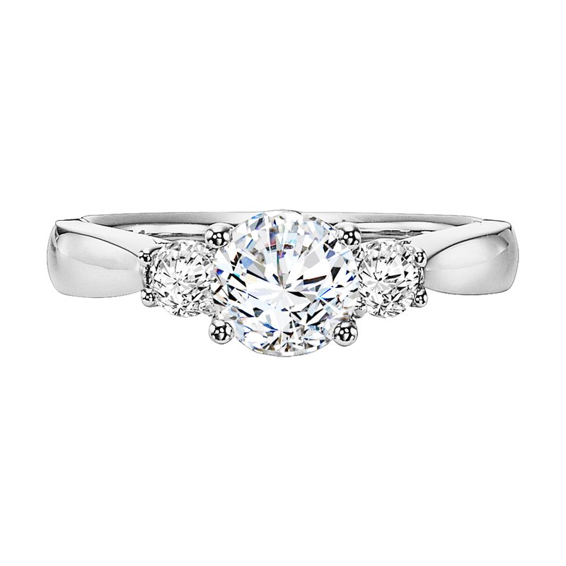 3-stone prong set diamond engagement ring elegantly set on a high polished band