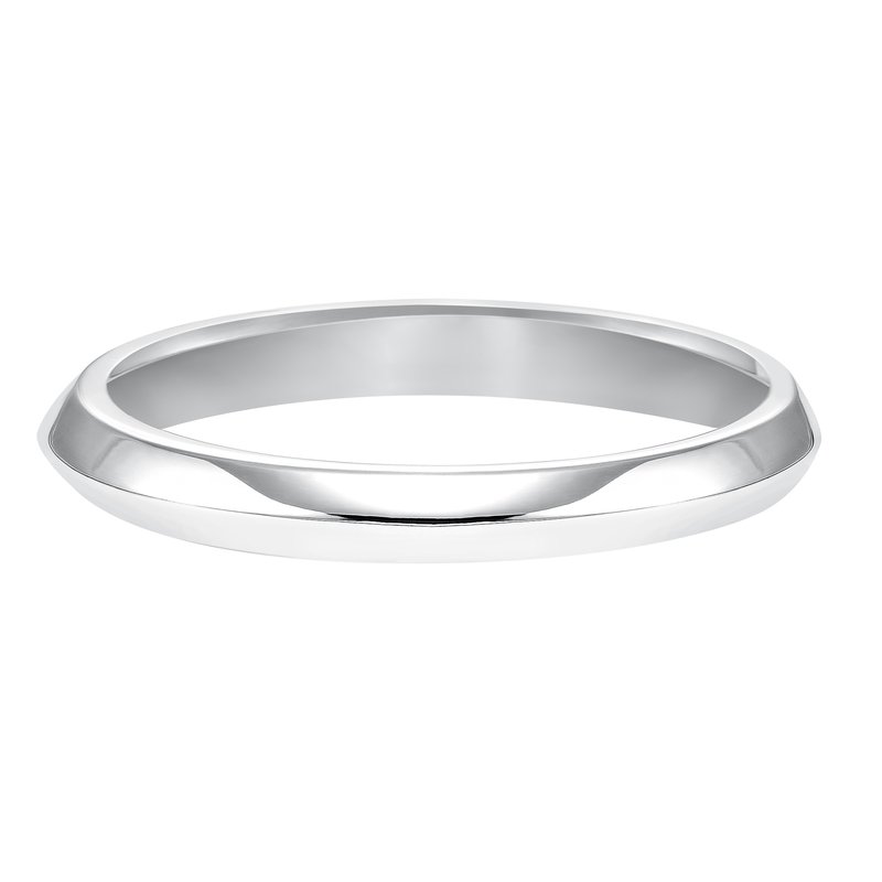Wedding band with high polished, knife edge design.