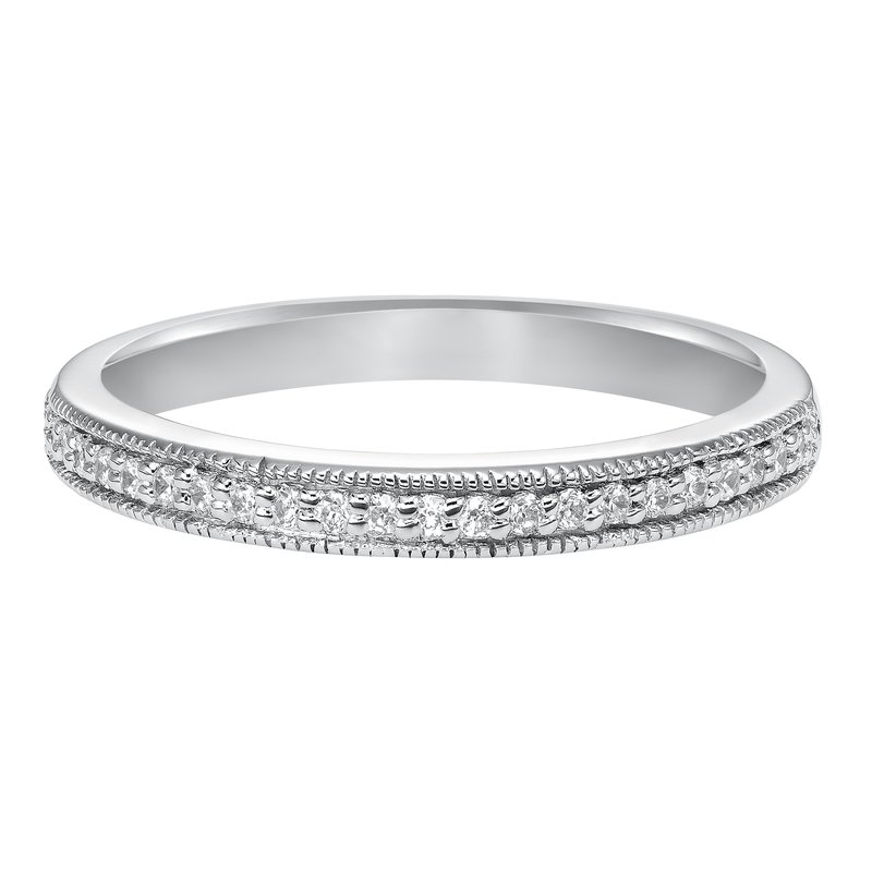 Wedding band with bead set, round diamonds and milgrain.