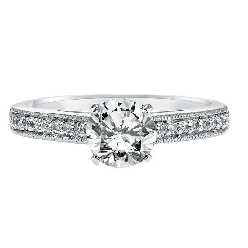 Delicate milgrain gracefully accents this diamond prong set band for refined look