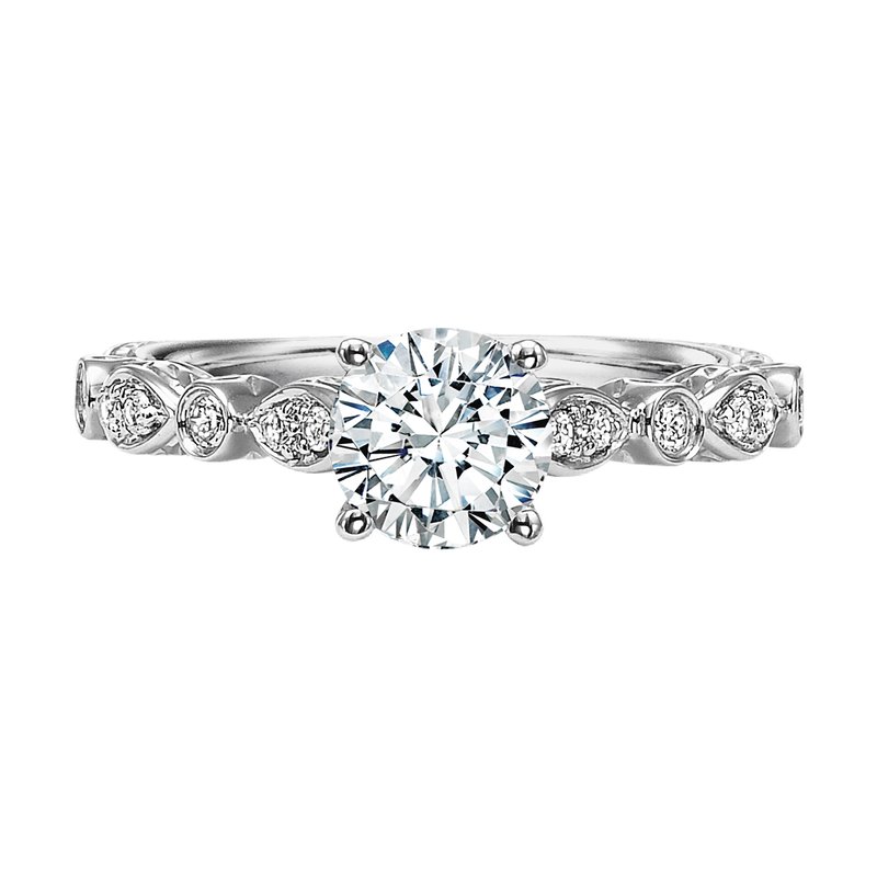 This prong set diamond and engraved band dazzles with distinct yet delicate styling