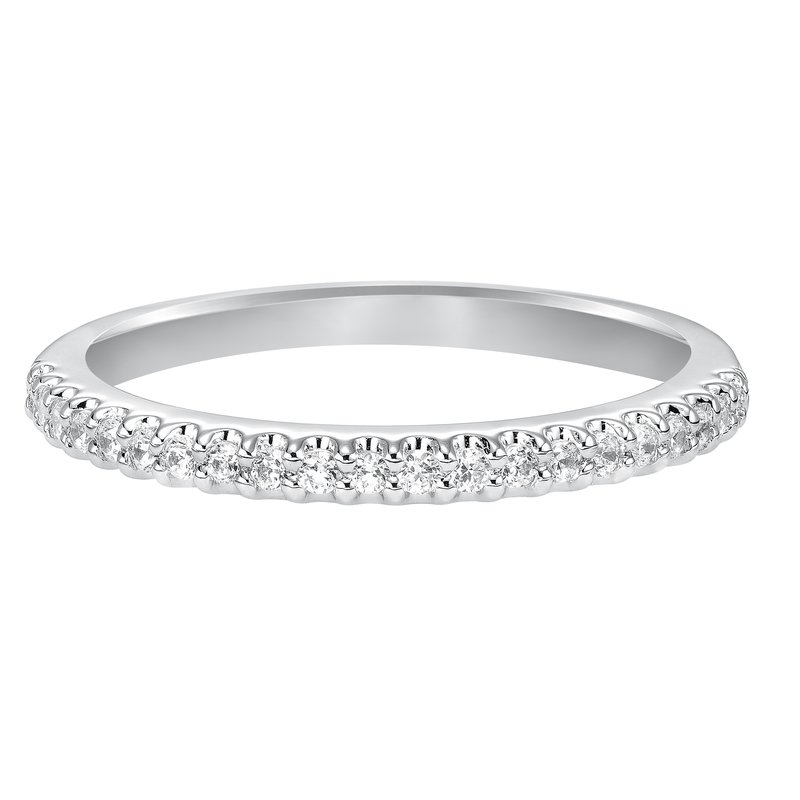 Wedding band with prong set, round diamonds.