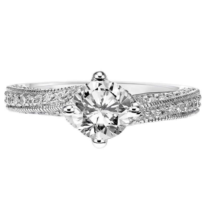 Modern meets vintage chic with this stunning diamond prong set and milgrain engagement ring