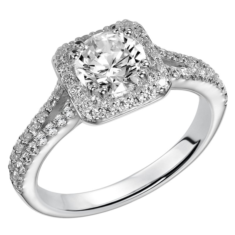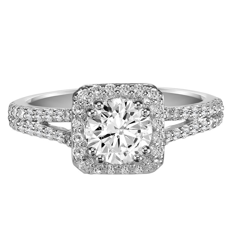Contemporary Prong Halo Engagement Ring