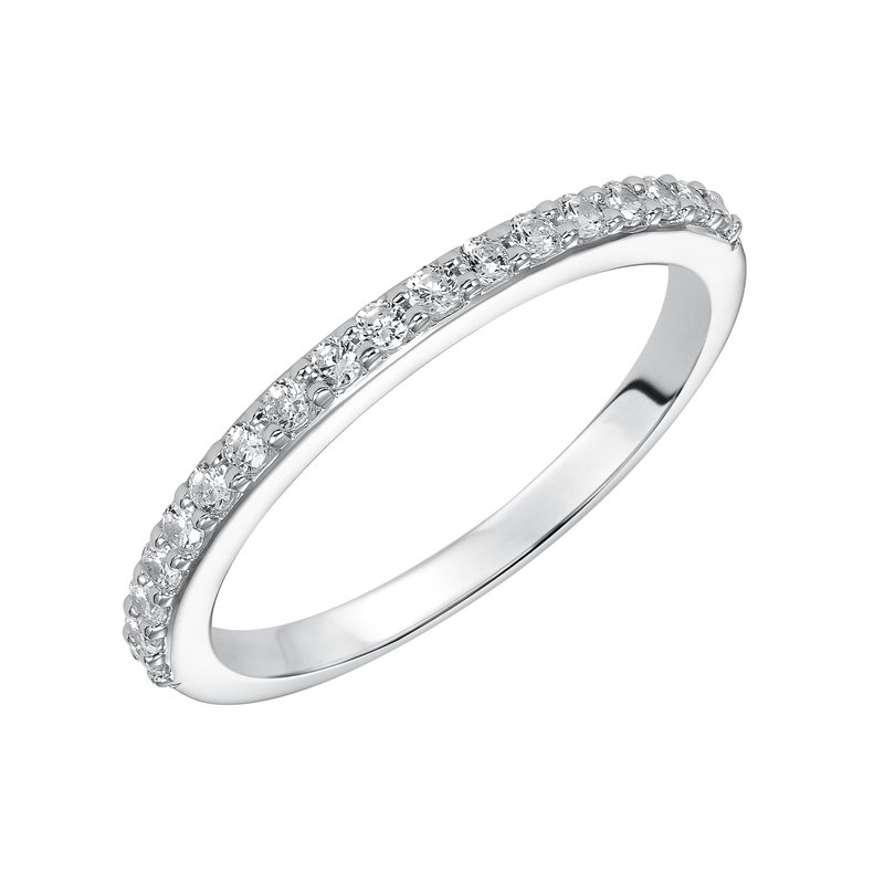 Wedding band with prong set, round diamonds.