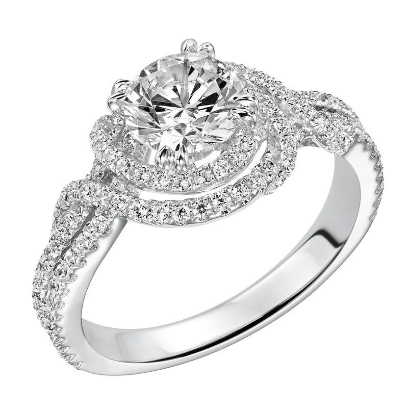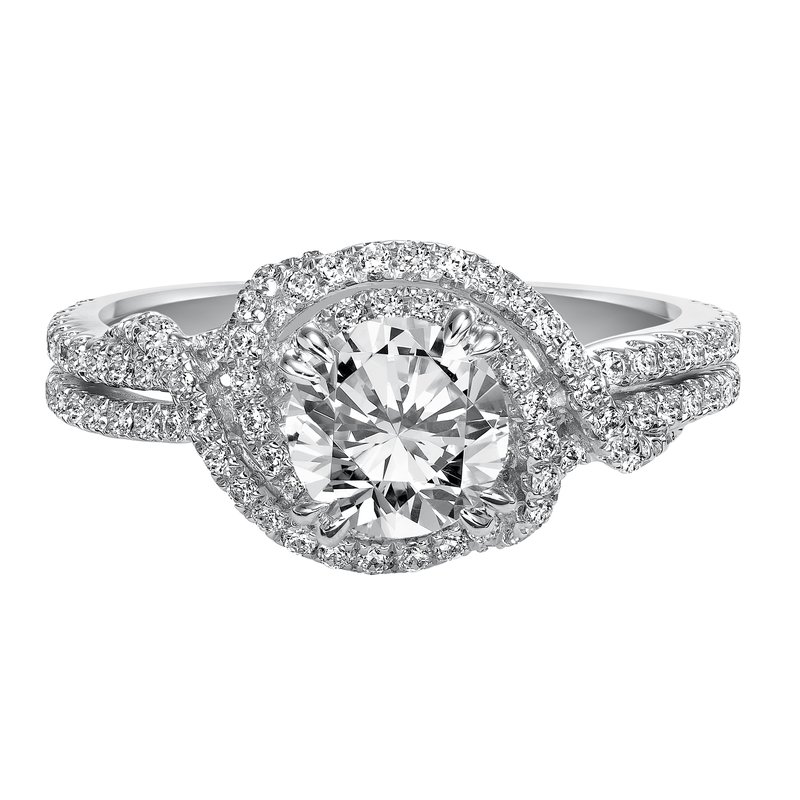 Graceful curves inspired the design of this show-stopping free form diamond prong set engagement ring