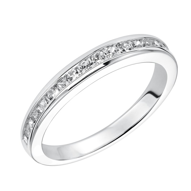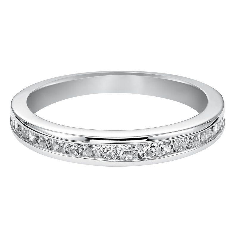 Wedding band with channel set round and princess cut diamonds.