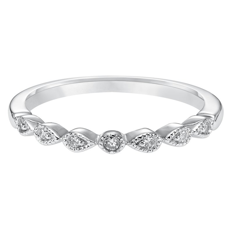 Wedding band with round diamond enhanced petal motif with milgrain design.