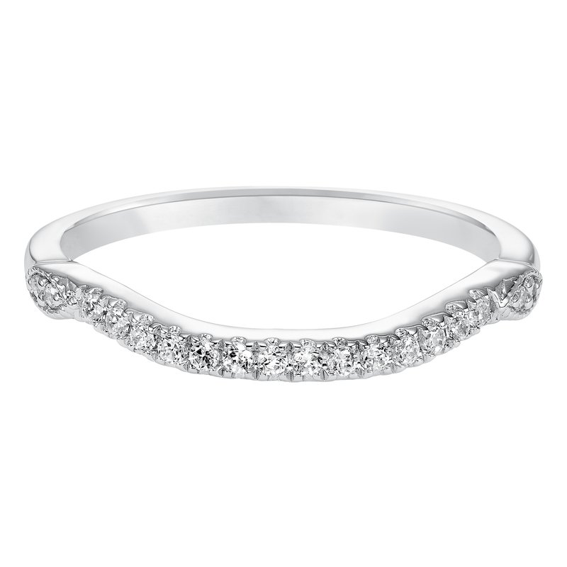 Wedding band with pave set, round diamonds.