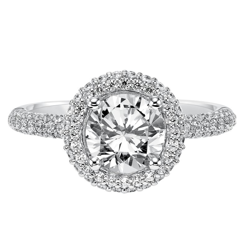 Modern meets timeless with this sophisticated multi-row pave diamond halo and band setting