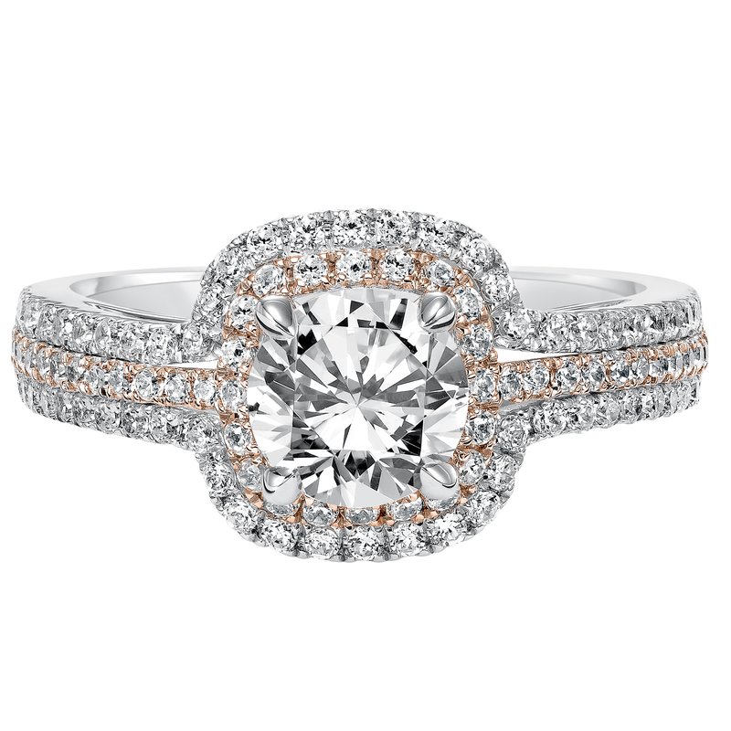 Double Row Two-Tone Diamond Halo Engagment Ring with Triple Row Two- Tone Diamond Shank