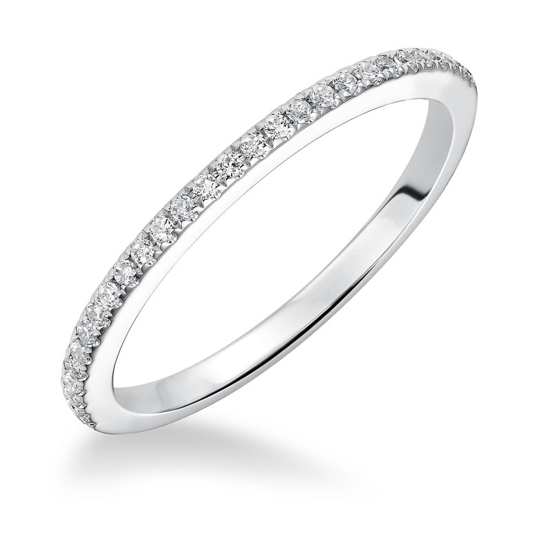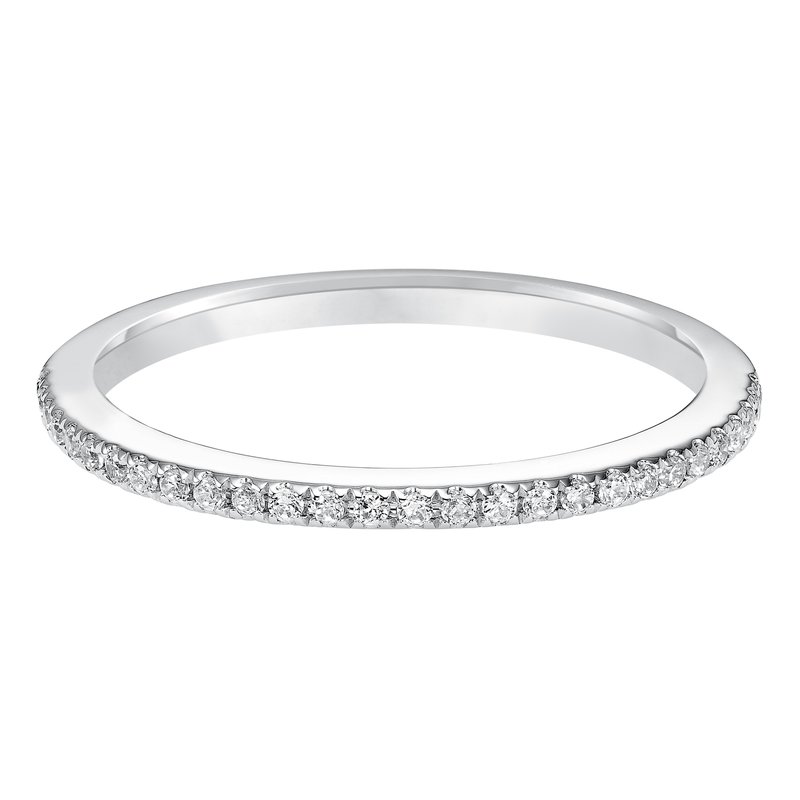 Wedding band with pave set, round diamonds.