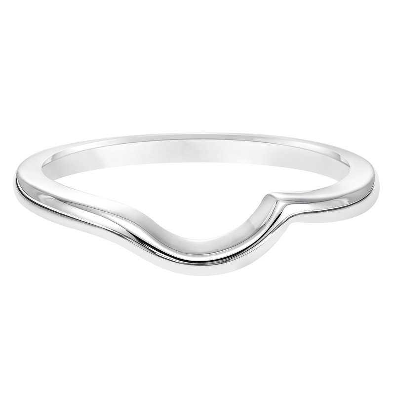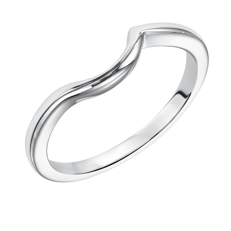 Wedding band with high polished shank designed to fit flush with matching engagement ring.