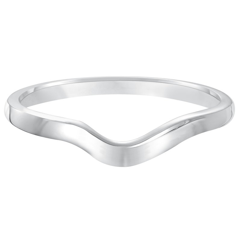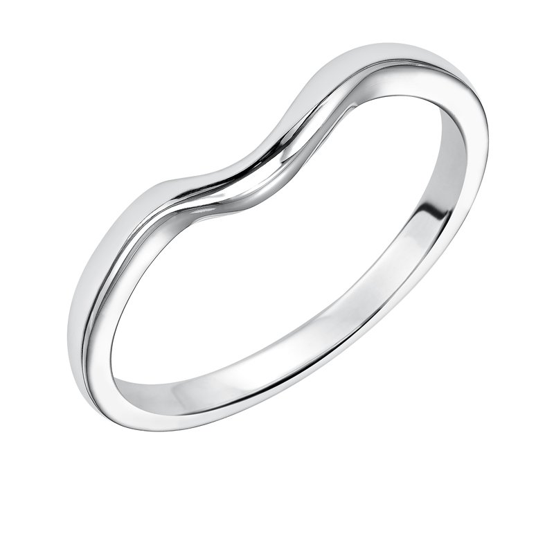 Wedding band with high polished shank designed to fit flush with matching engagement ring.