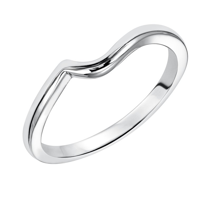 Wedding band with high polished shank designed to fit flush with matching engagement ring.