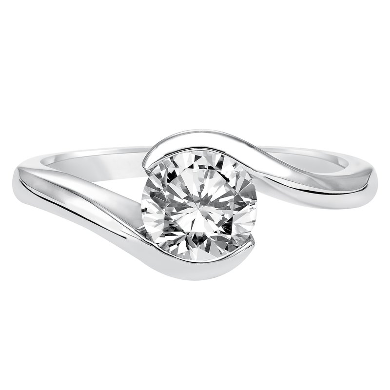 Modern and marvelous, this engagement ring features a floating bezel set round diamond with a gorgeous, high polished bypass band
