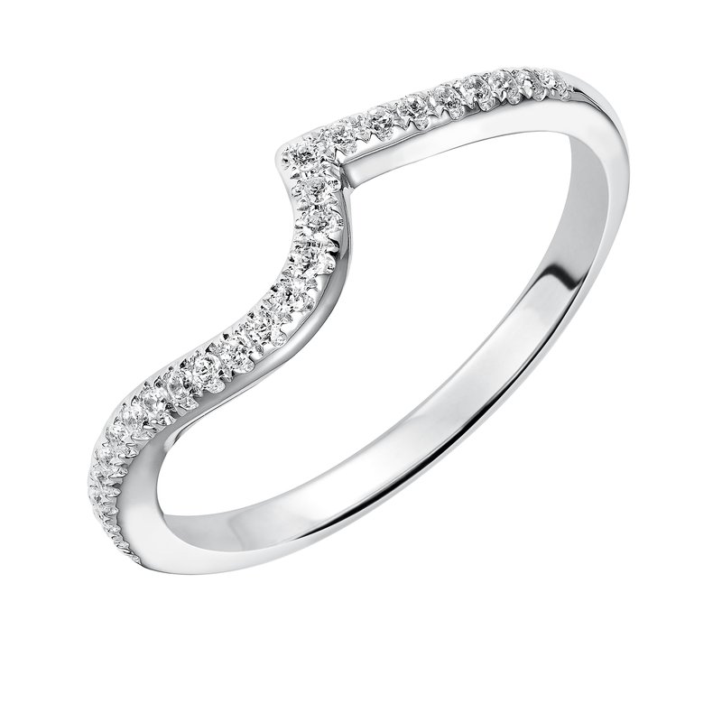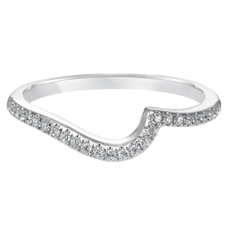 Wedding band with pave set, round diamonds and curved design to fit flush with matching engagement ring.
