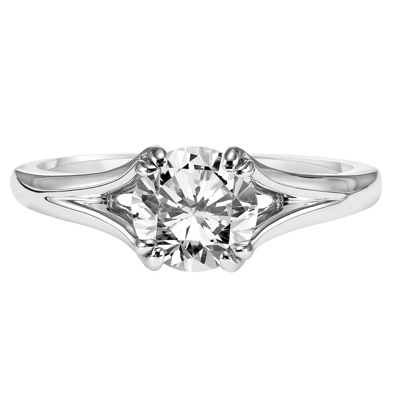 This engagement ring is simply elegant with its high polished split band and dazzling surprise stone all accentuating the center diamond perfectly