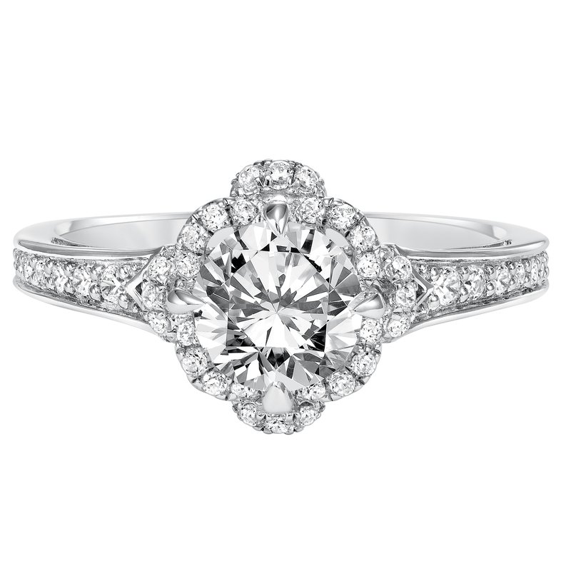 Diamond Prong Set Halo with Filgree Accent Engagement Ring