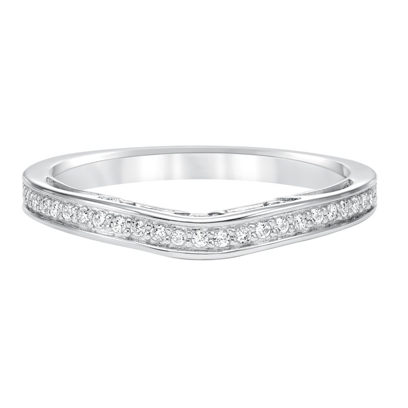 Curved Diamond Prong set With Filgree Accent Wedding Band