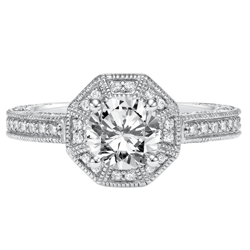 Octagon Shape Diamond Prong Set Halo with Milgrain Engagement Ring