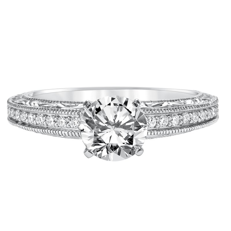 Diamond Prong Set Engraved and Milgrain Engagement Ring