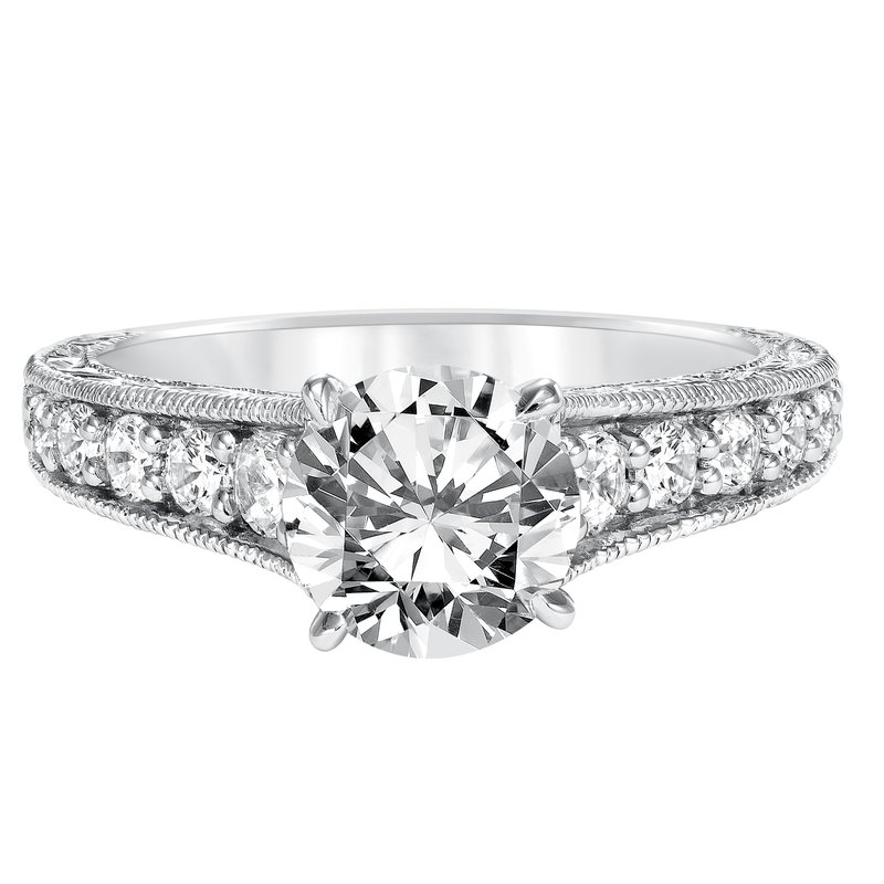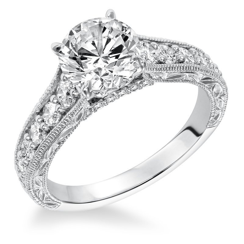 Diamond Prong Set Engraved and Milgrain with Graduated Stone Engagement Ring