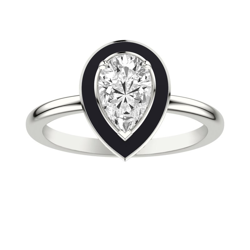 Engagement Ring with Ceram8 Pear Halo and Hidden Diamond Halo with Polished Shank