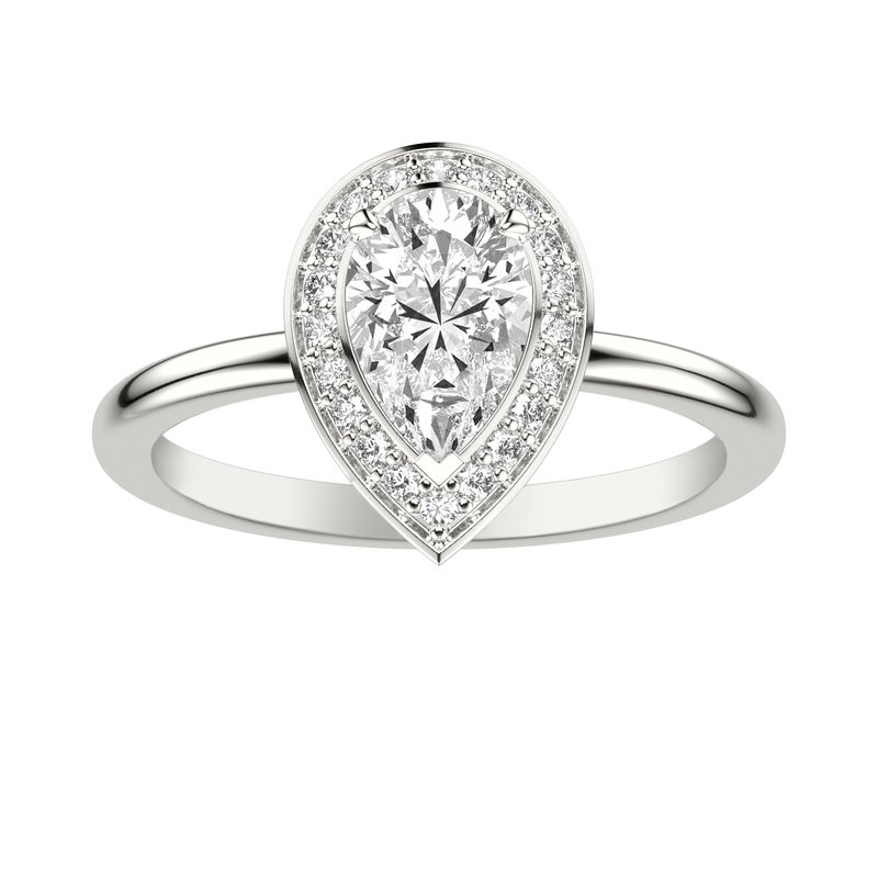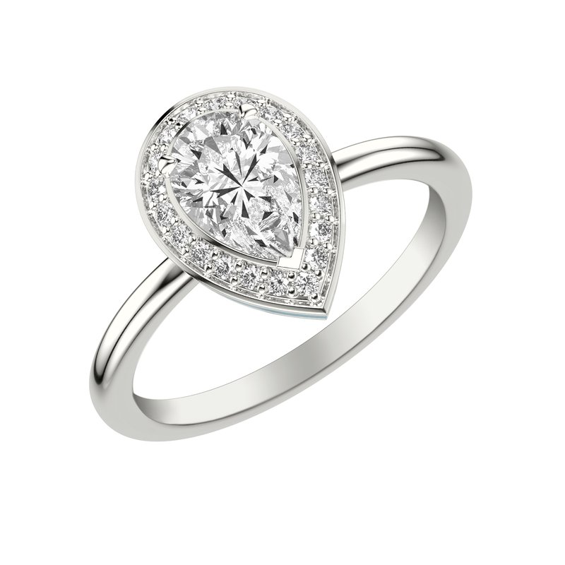 Engagement Ring with Diamond Pear Halo and Ceram8 Hidden Halo with Polished Shank