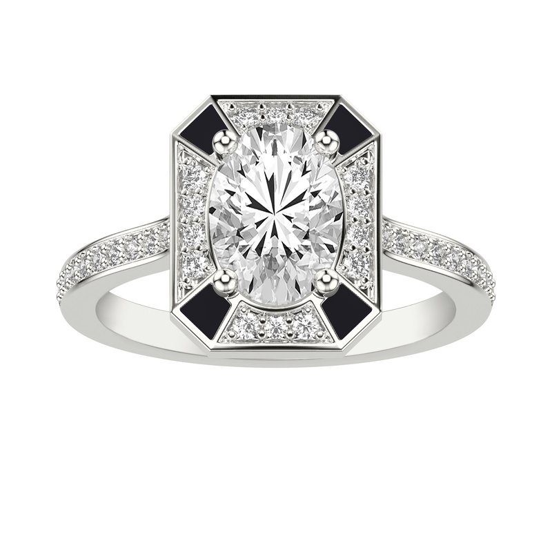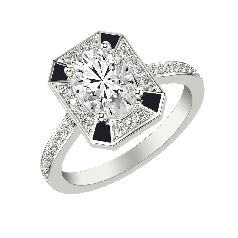 Art Deco Engagement Ring with Accented Ceram8 Diamond Halo and Diamond Shank with Oval Center