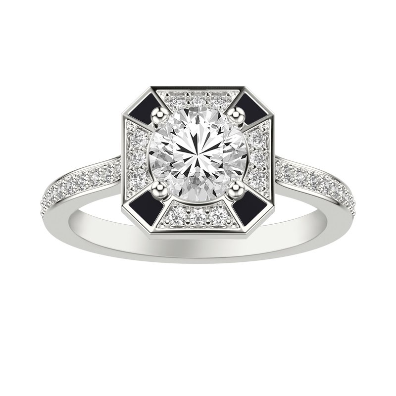 Art Deco Engagement Ring with Accented Ceram8 Diamond Halo and Diamond Shank with Round Center
